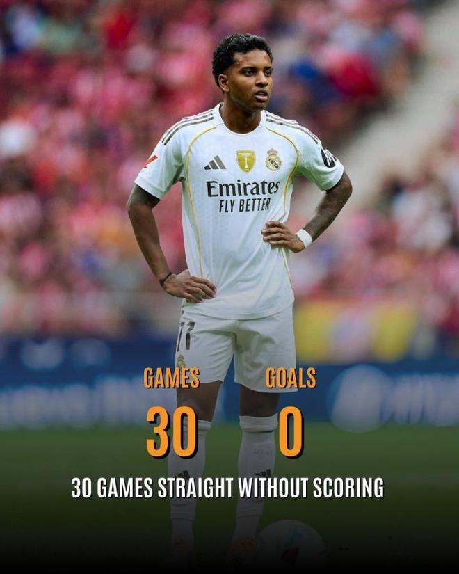 就此,他制造出一项非常尴尬的新纪录,目前在皇马已经遭遇到了连续30场进球荒,追平了皇马123年队史上的最差的前锋不进球纪录。在此之前是由前皇马7号队员马里亚诺创造的,目前罗德里戈已经与他“平分秋色”,在下场比赛如果他没有办法突破取下进球,那么、将成为最长记录的拥有者。这的确是一个非常丢人的情况。